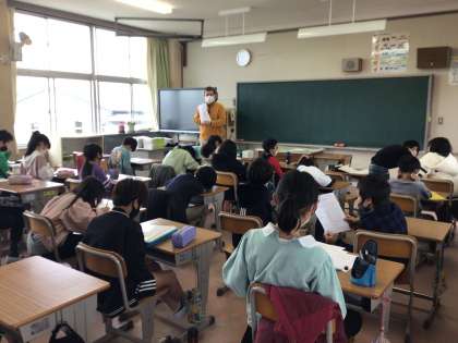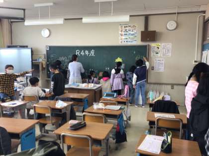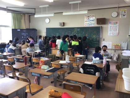 お楽しみ会の準備を行ったり、最後の配付物の説明を受けたりしています。