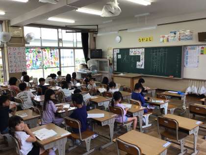 水泳のあとですが、がんばって学習に取り組んでいます。
