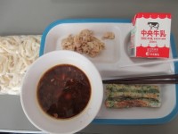 今日の献立は、ごはん、ぶりたつたあげ、ひきずり、キャベツのゆかりあえ、牛乳です。
