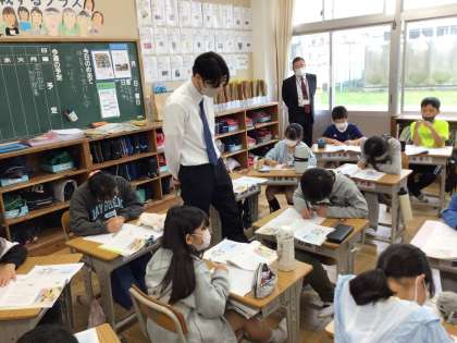 教育実習生が道徳の授業に取り組んでいます。よりよい先生を目指して、研究を積み重ねてほしいです。