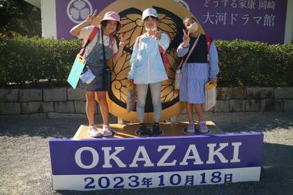 岡崎城前でお弁当を食べたり,大河ドラマ館を見学したりしました。