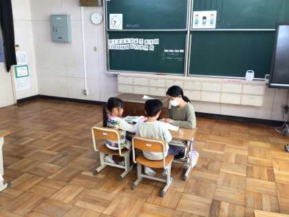 秋晴れの中、子どもたちは元気に学習に取り組んでいます。