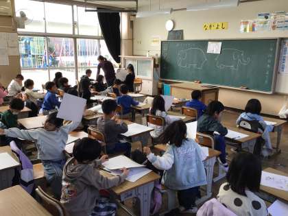 秋晴れの中、子どもたちは元気に学習に取り組んでいます。