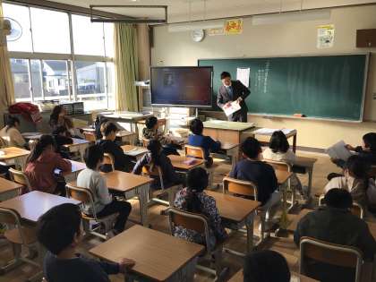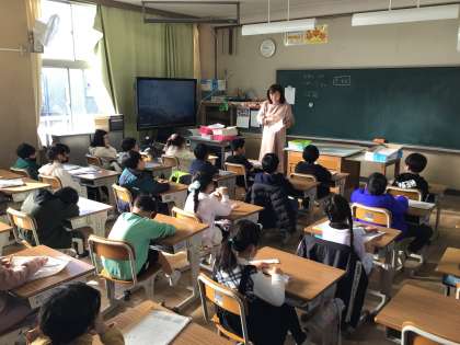 始業式後の最初の学級活動です。担任の話を落ち着いた雰囲気の中で聞きながら、冬休み中のことや3学期の目標について考えています。