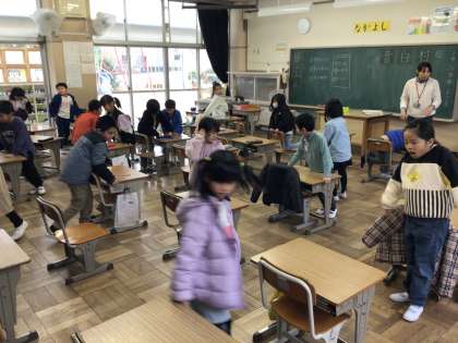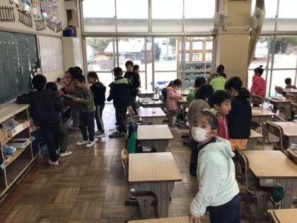 寒空の日ですが、児童は元気に活動しています。学力テストに取り組んでいる学年もあります。