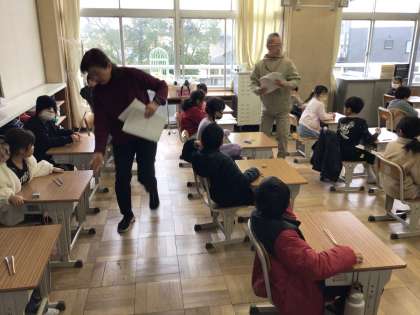 寒空の日ですが、児童は元気に活動しています。学力テストに取り組んでいる学年もあります。