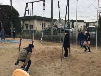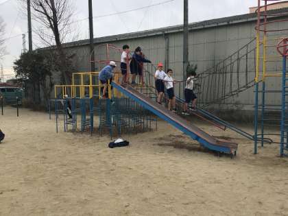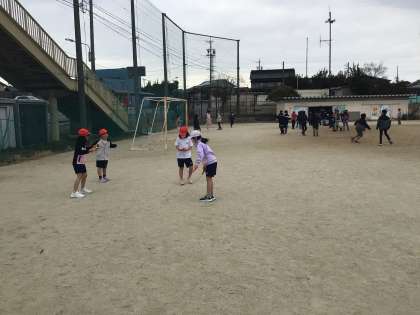 寒空の日ですが、児童は元気に外で活動しています。寒さに負けず、すごい元気です。