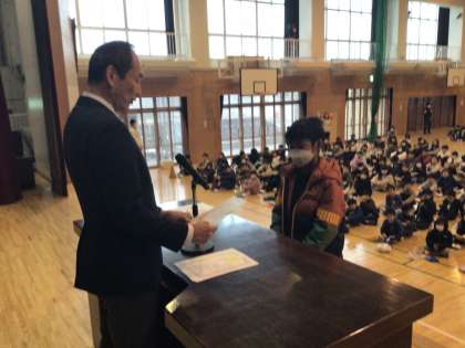 令和6年度前期児童会役員の任命と表彰が行われました。
