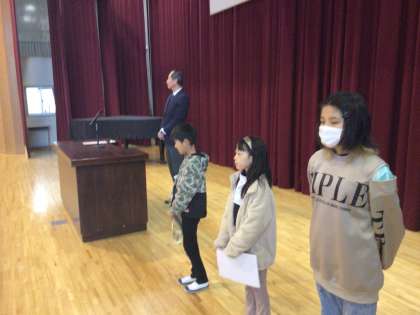 令和6年度前期児童会役員の任命と表彰が行われました。