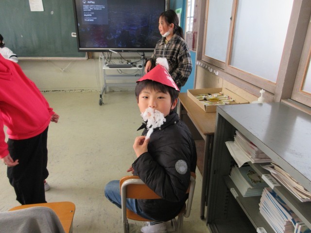 今日のふきっ子4年生、5時間目の様子です。お楽しみ会をしている学級がありました。各グループの出し物を披露している学級もあれば、学級みんなで様々な材料を使って「シャボン玉」を作って飛ばしている学級もありました。