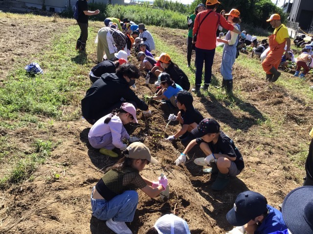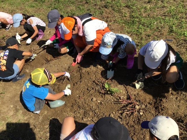 はじめに芋掘りの手順を教わり、途中で折れないように丁寧に掘ることができ、とても楽しそうでした。