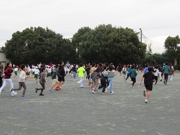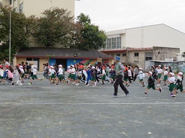 体力を高め、健康な体をつくることをめざし、持久走が始まりました。子どもたちは、自分の体調にあわせ、自分のペースで取り組みます。
