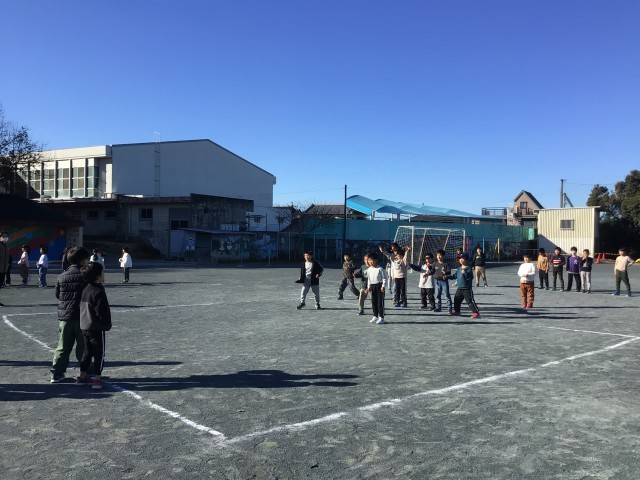 ドッジボールでは、普通のドッジボールや王様ドッジなどルールを変えて遊びました。一生懸命投げたり、よけたりしていて楽しそうでした。