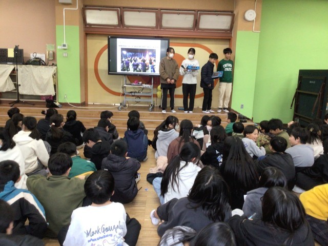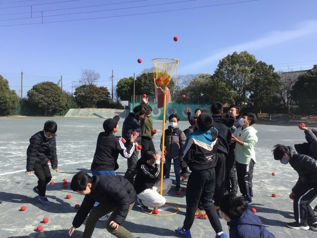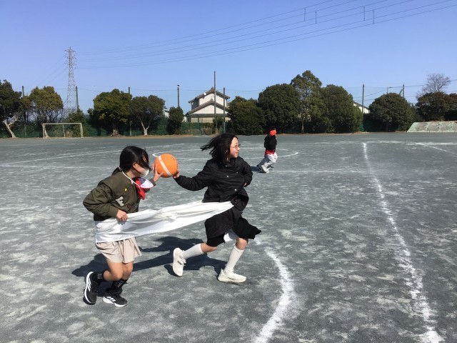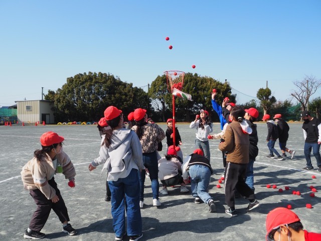 学級委員が企画をし、3月5日に運動場で玉入れとデカパンリレー、6日に6年間の○✕クイズを行いました。