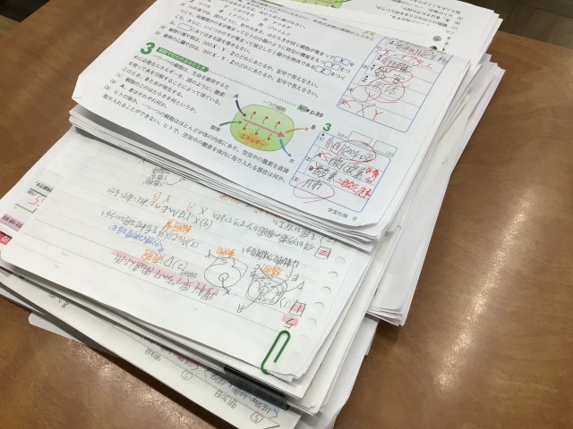 単元テスト前に集めたノートも、しっかりと盛り上がっていました。プラスアルファで勉強した紙が、たくさん挟まっているからです。ずっしり感から、みんなの頑張りを感じています。