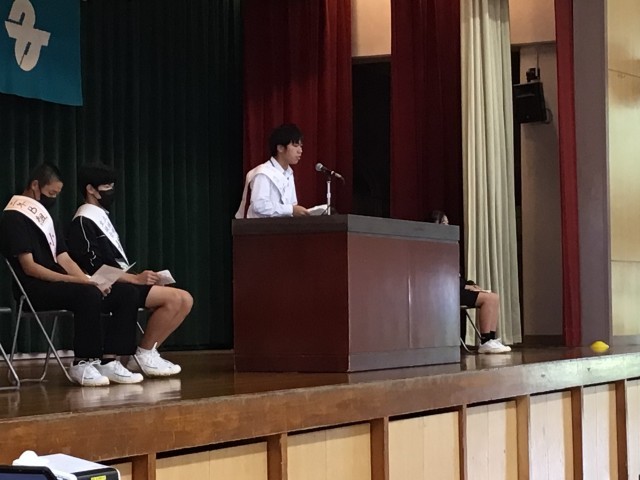 本日は後期生徒会役員選挙の立会演説会開催されました