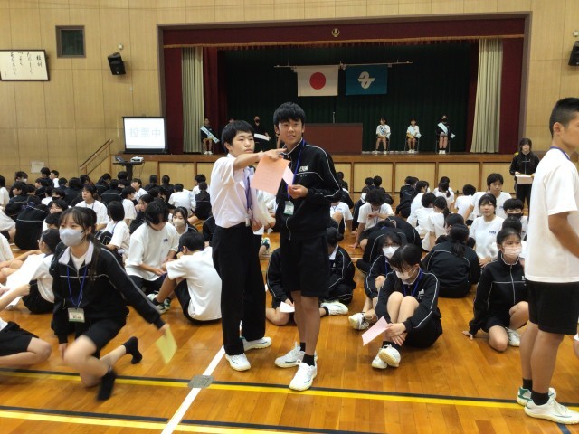 どの候補者も富貴中学校の未来を真剣に考え、具体的な提案をしていました。全校生徒に直接、自分の意見を述べられる機会は、そう多くはありません。自分の考えを明確に発信できるというのは、この立会演説会がもつ大切な機能です。