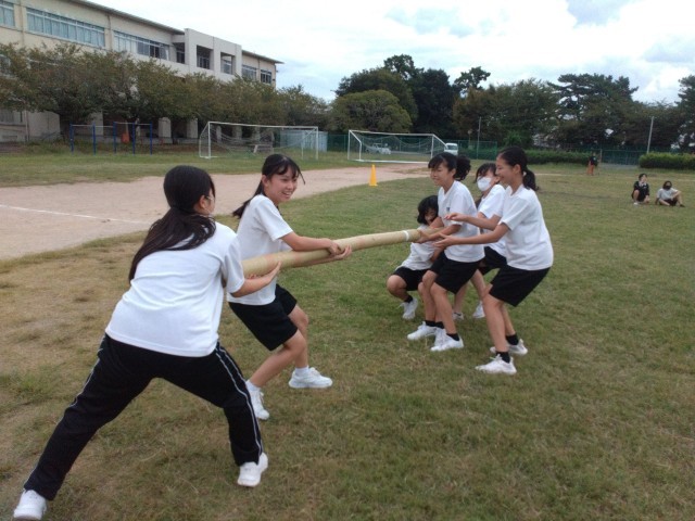 先週、体育祭の学年練習を行いました。何とか雨が降られずに、無事に良い練習ができました。最後にみんなでグランドの草を片づけました。競技以外にも一生懸命な姿を見ることができてよかったです。