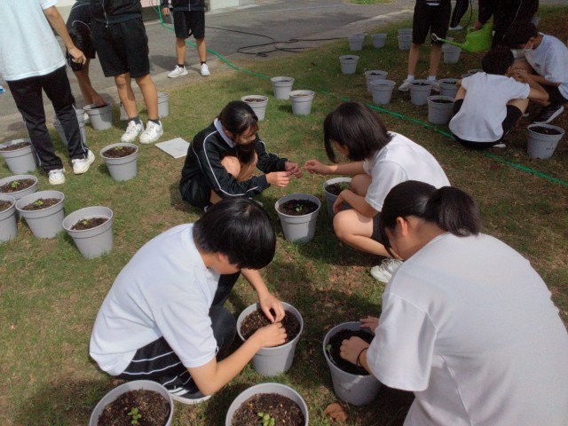 毎日、朝や帰りだけでなく、昼休みにも様子を見に来て、水やりをしたり、優しく声をかけたりする生徒の姿が見られます。