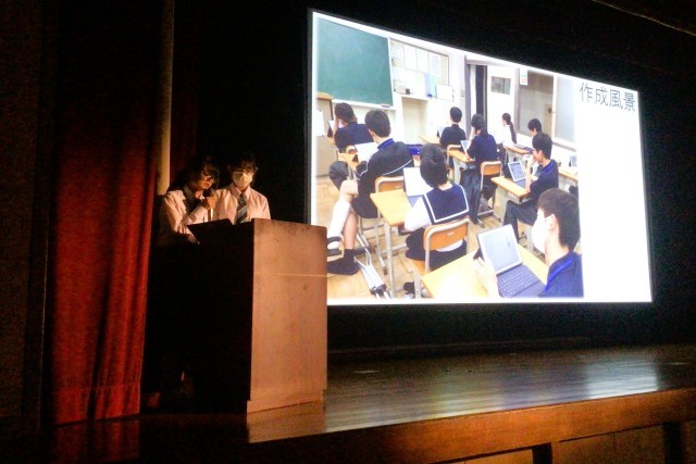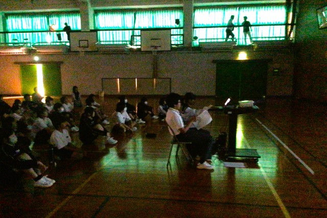 5限に、1年生総合発表の練習を行いました。発表者やパソコン操作、照明などの役割分担をして、それぞれを責任をもって取り組んでいました。発表者だけでなく、鑑賞の態度もすてきでした。いよいよ明日は文化祭本番です!
