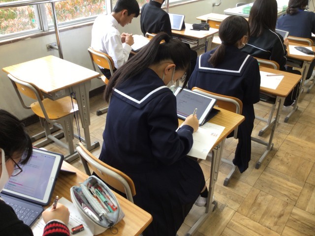 来年度の進路選択に向けて、進路学習が始まりました。将来どんな仕事に就きたいか、どんな人生を送りたいかなどを考えました。また、高校の種類や、学科についても学習しました。