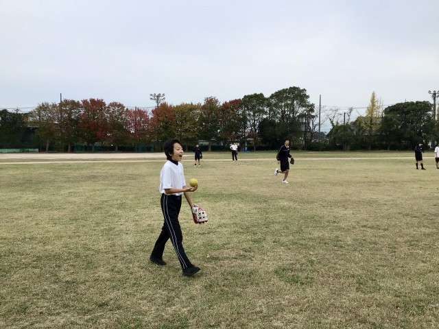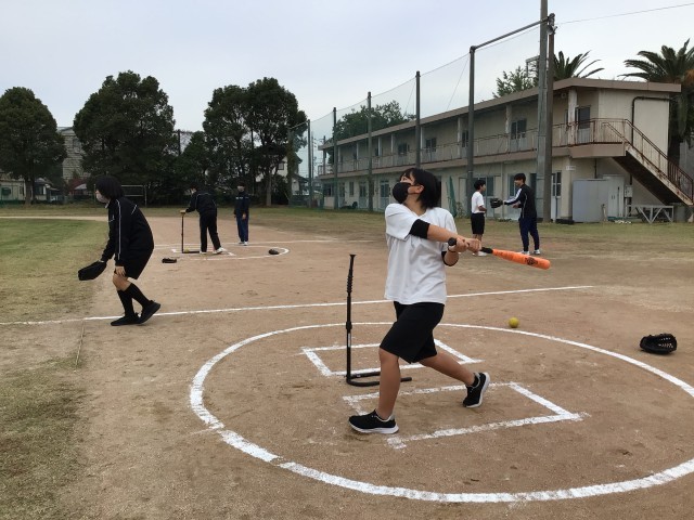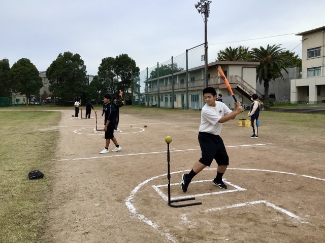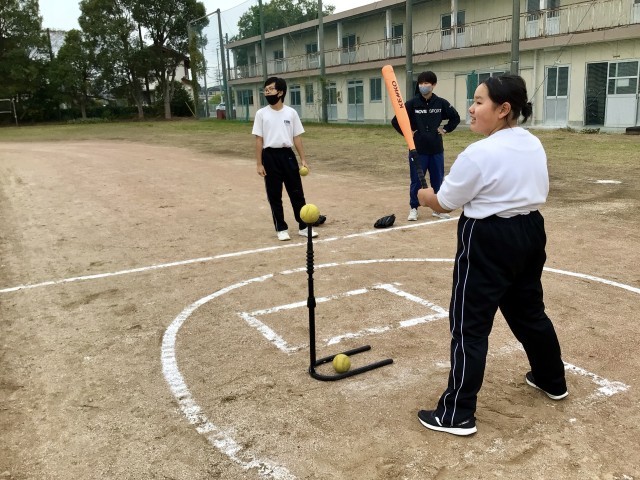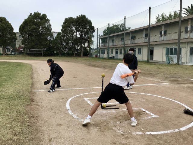 体育の授業では、Tボールの練習をしています。打順が回ってくると、みんなとてもワクワクした顔で構えています。思いっきりバットを振って気分も爽快のようです。