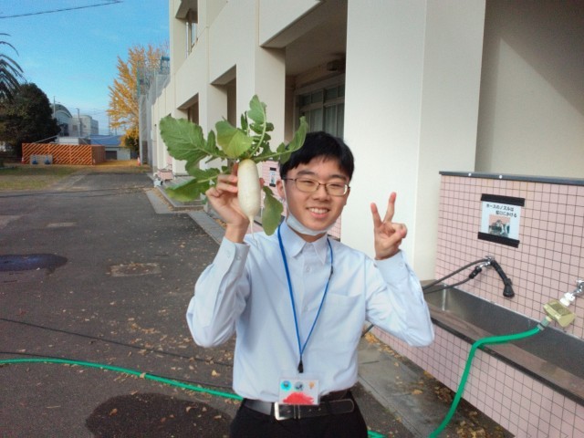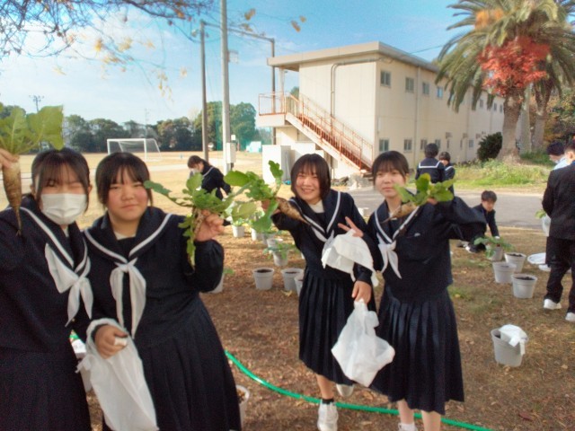 一つ一つ大根を引き抜いていく生徒たちの表情は、うれしそうでした。「こんなに大きくなってる!」と驚いたり、笑顔で見せ合ったりする姿から、自分たちで育てた実感が伝わってきました。