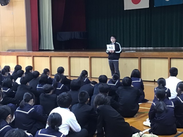 2学期最後の学年集会がありました。3年生担当から今年の出来事や受験、卒業に向けての思いを順番に話しました。生徒たちは真剣に話を聞くことができました。よい冬休みを過ごして、富貴中学生で過ごす最後の「40日」をみんなで頑張っていきましょう。