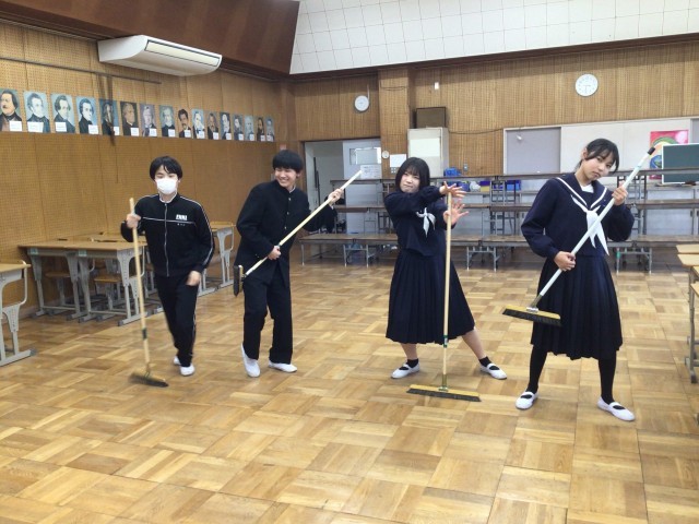 卒業する前に1年生が掃除に来てくれました。3年生は、1年生に優しく教えてくれたので、みんなが卒業しても校舎を、綺麗に保てそうです。