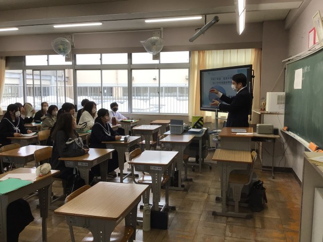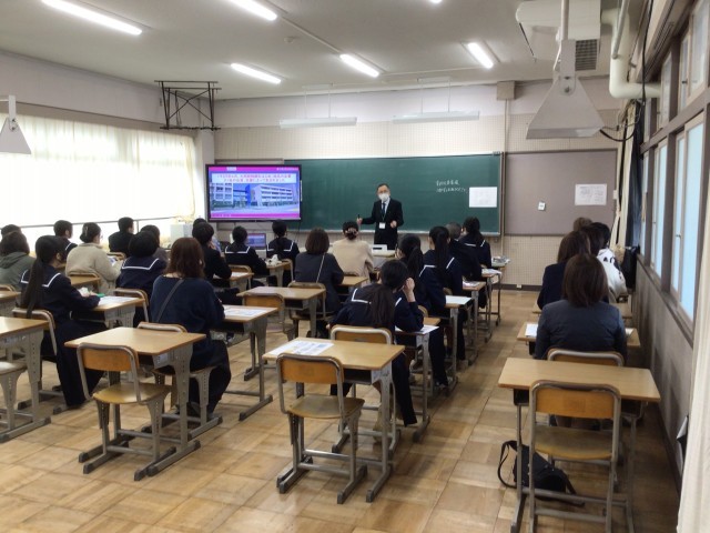 2年生進路説明会では、特色ある高校の先生方をおよびし、詳しくお話をしていただきました。日本福祉大学付属高校の全体会の後、武豊高校、半田農業高校、大同高校、星城高校、名古屋工学院専門学校、山本学園情報文化専門学校の教室に分かれてお話をしてもらいました。真剣に聞く姿を見て、自分のこれからについて考える大切な時間になったと感じました。今回の学びを今後の進路選択につなげていってほしいです。