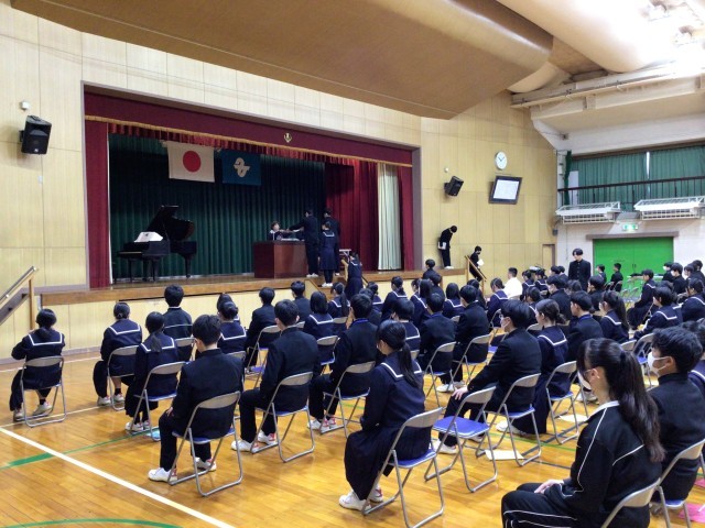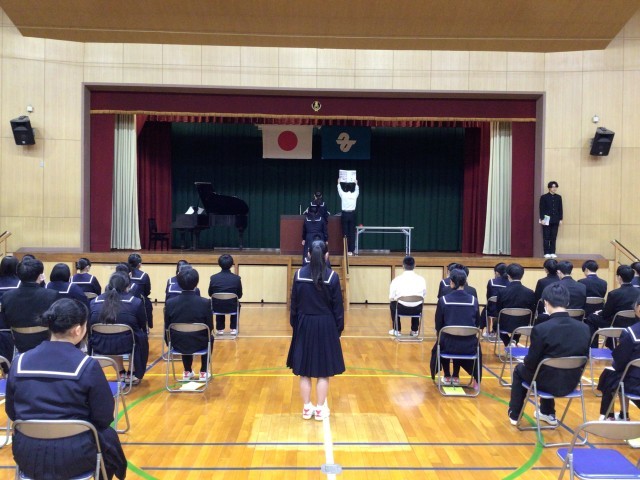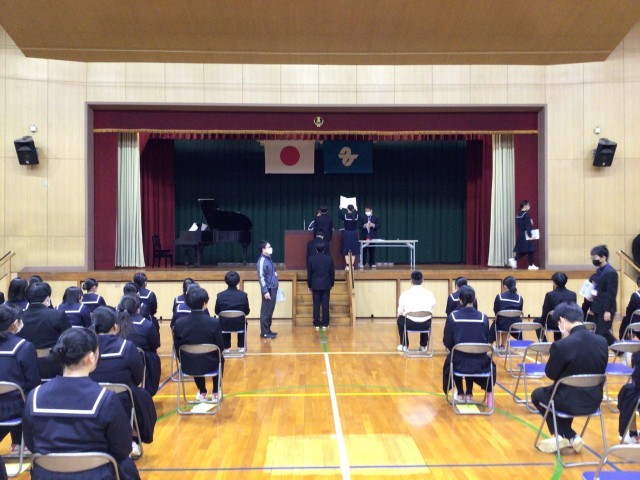 今日から卒業式の通し練習を行いました。入場から証書授与、卒業の歌、退場まで本番の進行通りに進めました。生徒たちはとても真剣に取り組むことができました。本番までに細かな部分を修正し、さらに心のこもった動きや返事ができるようになっていくことを期待しています。