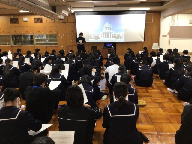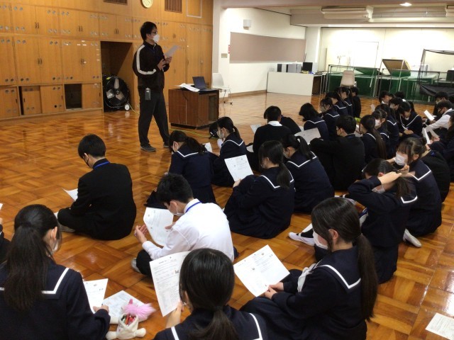 修学旅行のガイダンスを行いました。日程や研修の内容についての説明を行いました。