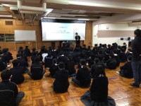男女に分かれて、ドッジボール大会! みんな本気でボールを投げ合い取り合い、白熱した戦いでした。級長と松久先生のマイクでの実況中継もあり、かなり盛り上がりを見せてくれました。
