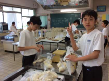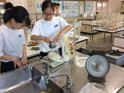 食事係が,先日いただいた野外炊飯用のお米を班ごとに分けています。