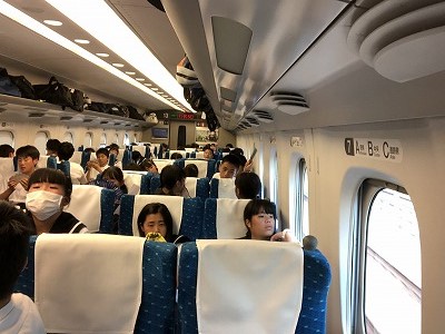 全員、新幹線に乗り、名古屋に向かっています。