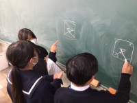 林間学習で、雨の日が続いた場合に行うレクリエーションについて考えました。学級レク実行委員の司会で、みんなの意見をまとめていました。いろんなことが決まっていくと、楽しみが増えていきます。