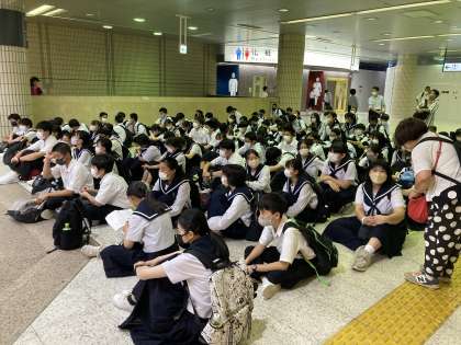 東京駅に着きました。人数確認をして、 JR京葉線に乗り換えて、舞浜駅からディズニーシーに向かいます。