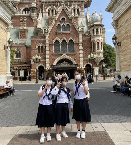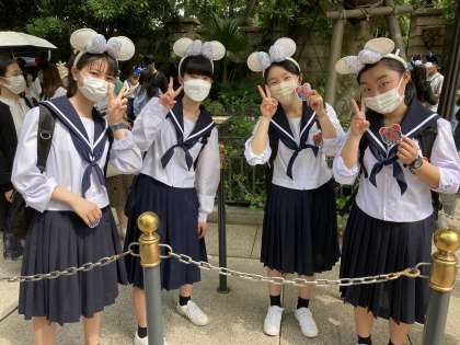 絶叫系のアトラクションで楽しんだり、苦手だけど挑戦したりしています。人気のアトラクションは待ち時間がありますが班の子と会話をして楽しく過ごしています。