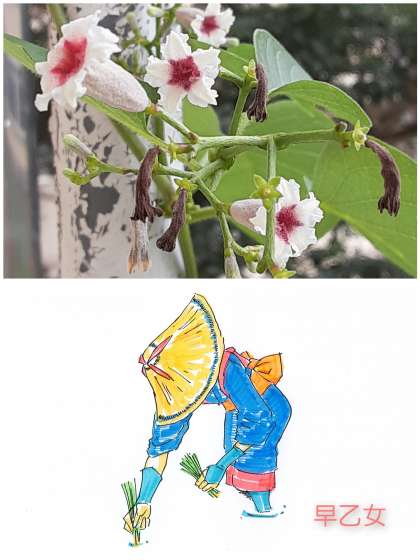 別名で「サオトメバナ」とも言います。サオトメ(早乙女)は、田植をする女性のことで、その笠(かさ)に花が似ていることが名前の由来だそうです。