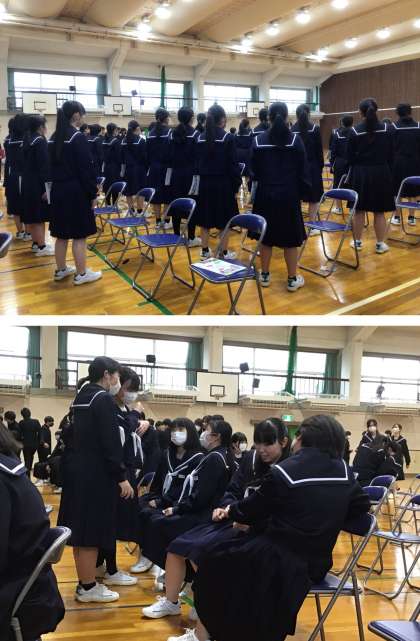 卒業式練習で見る3年生の背中は、とても頼もしく感じます。歌っている背中も、退場していく背中も、胸にぐっと込み上げるものがあります。