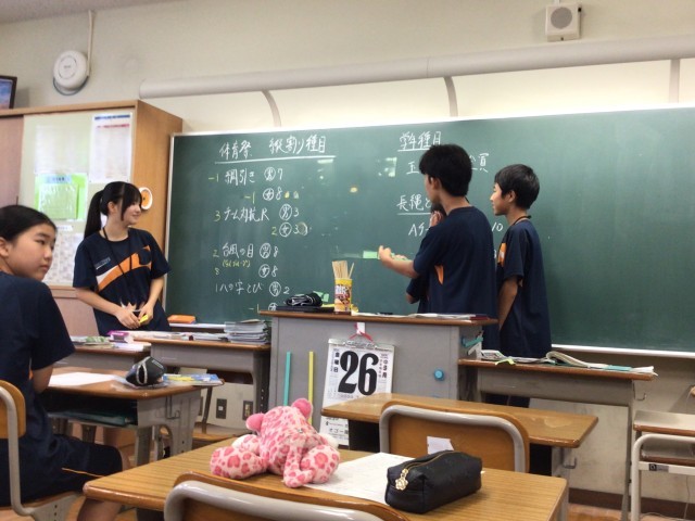 初めての体育祭に向け、皆で話し合って種目決めをしています。