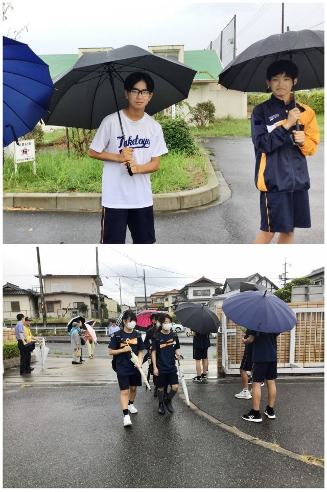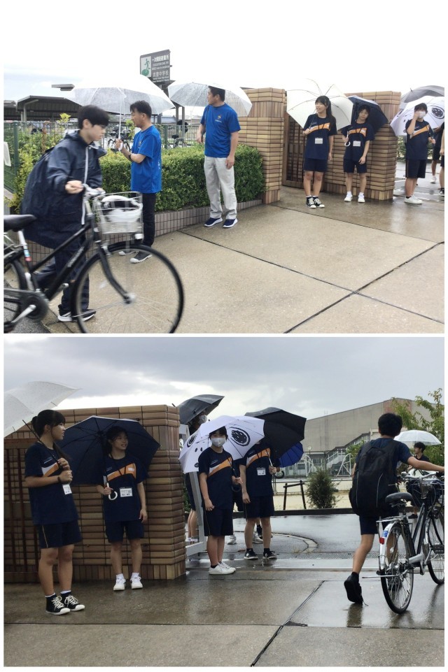 PTAや地域の方々、警察の皆様とあいさつ運動を行いました。