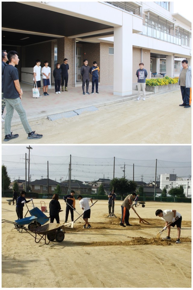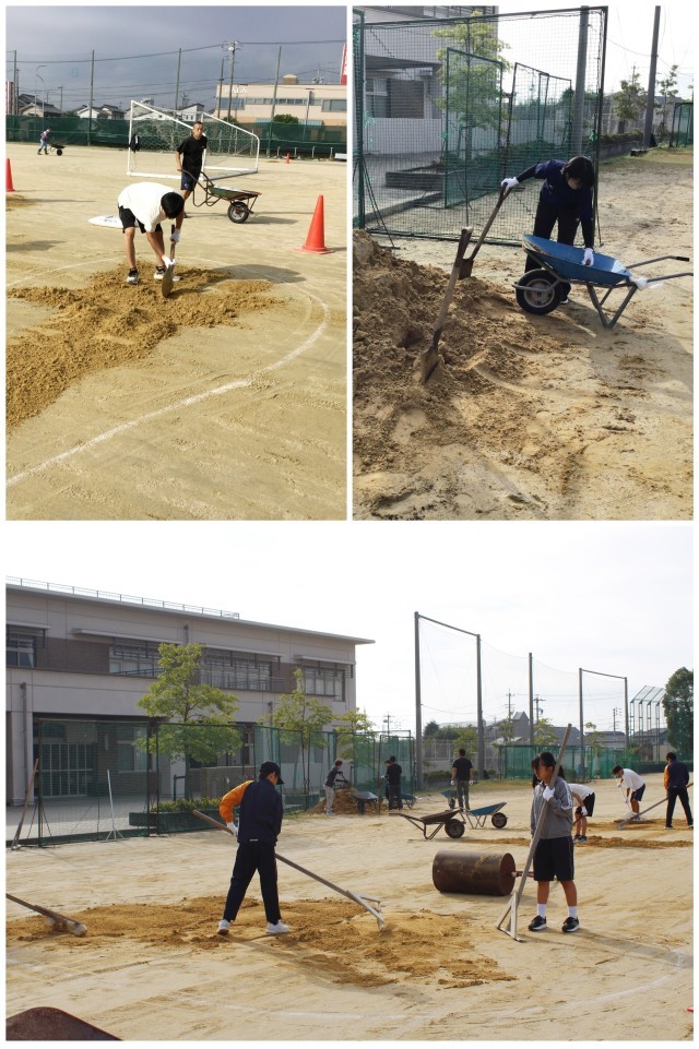 10月5日(日)に、学校を支えてくださるサポーターの方々の力をお借りして、運動場の整備を行いました。
