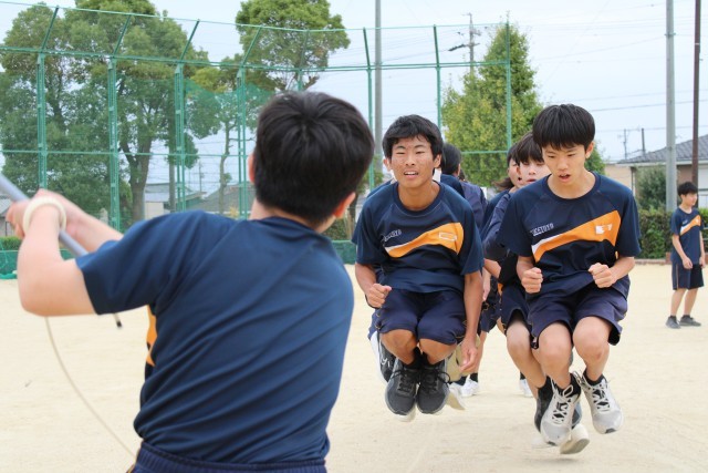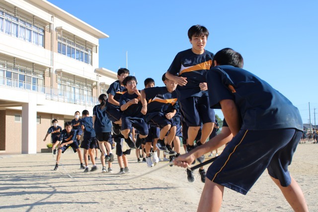 クラス全員で飛ぶ長縄飛びは、とても迫力があります。