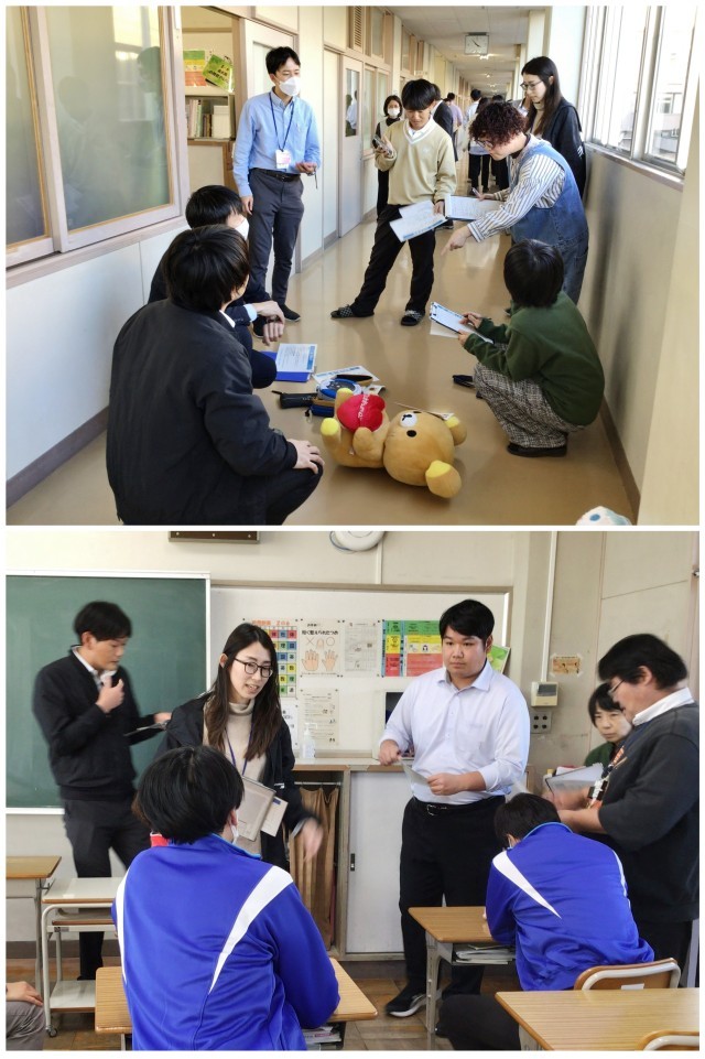 「生徒が倒れた」という想定の下、どのように教職員が動けばよいかについて、考え、行動しました