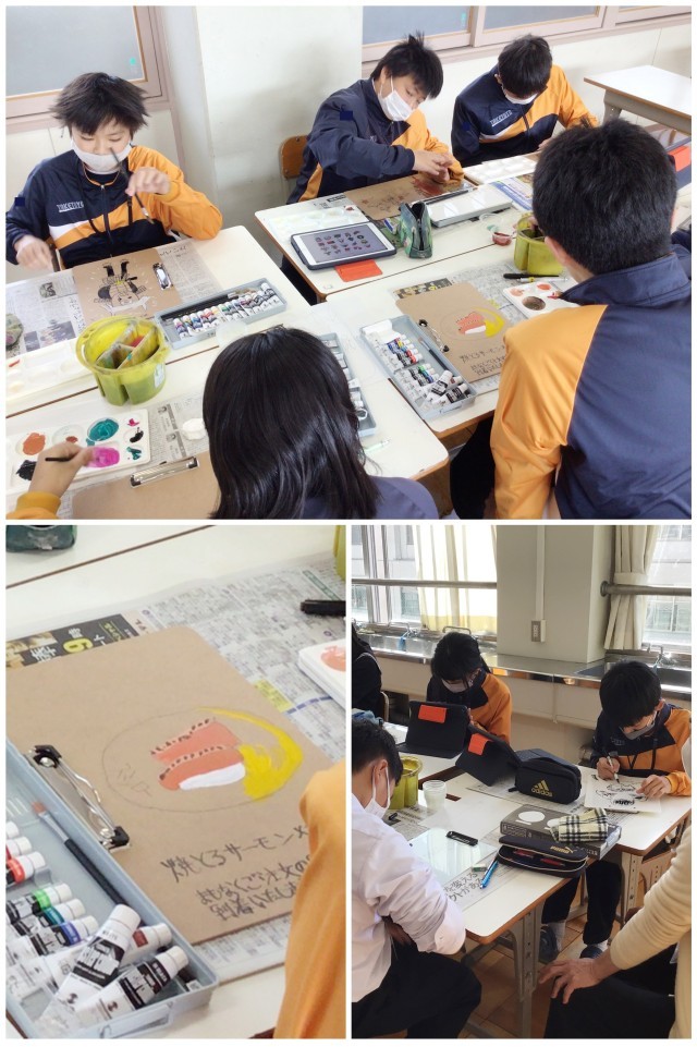 興味関心があるイラストやデザインなどをタブレットで調べ、バインダーに描いていく