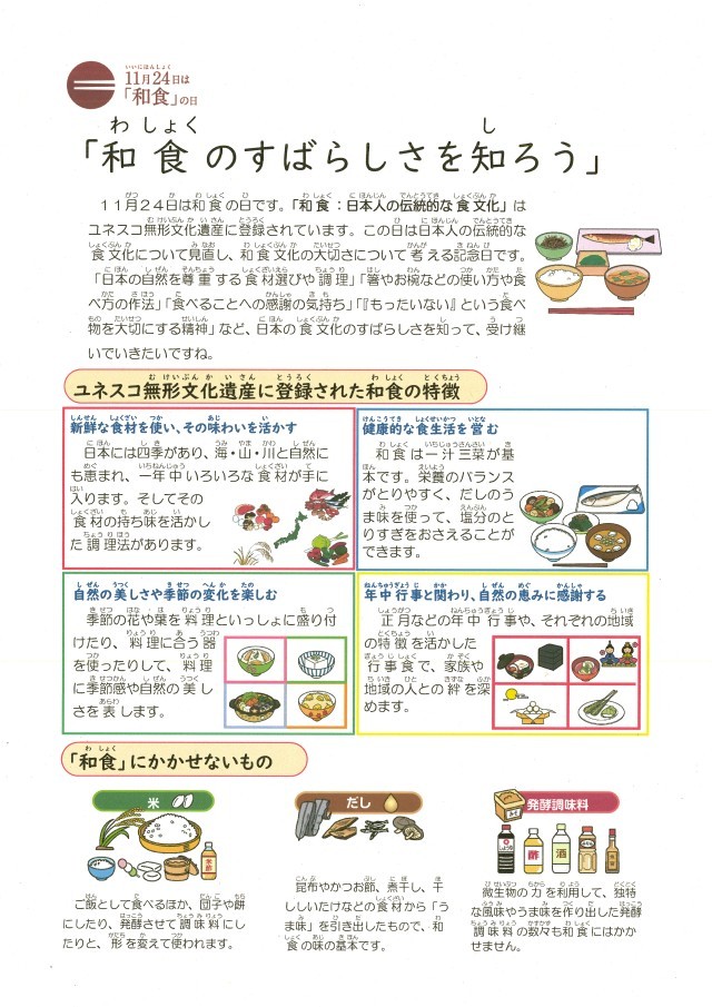 今日は、24日の「和食の日」にちなんだ「和食」メニュー