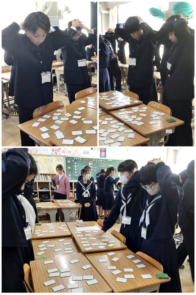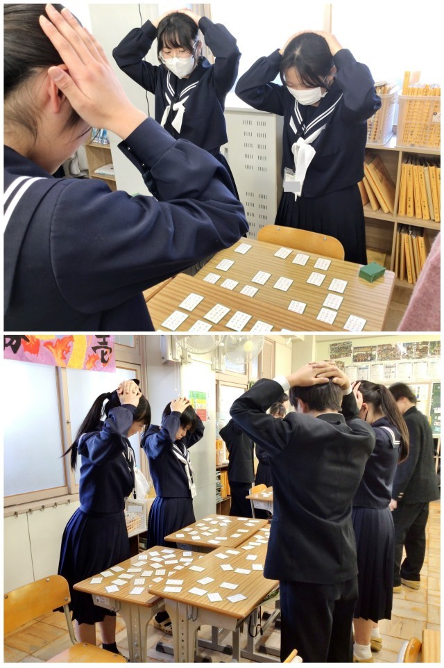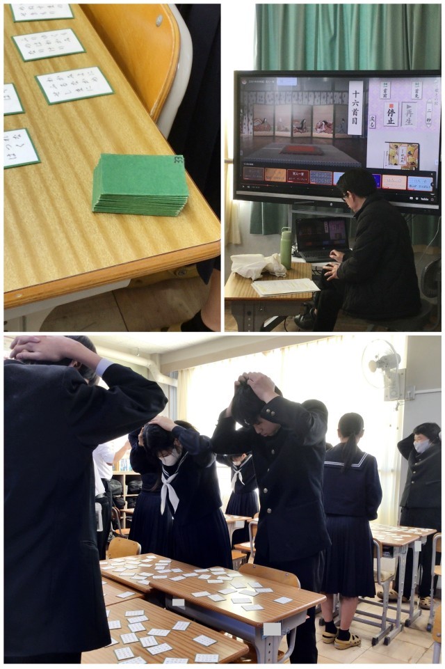 ぴりっとする緊張感のもと、百人一首に取り組んでいました