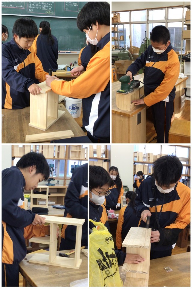 1学期から木工に関する技術を磨いてきたことで、生徒は手際よく作品づくりを進めていました