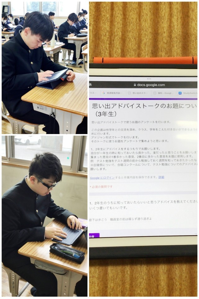 3年生用のアンケート、1・2年生用のアンケートにそれぞれ答える生徒たち